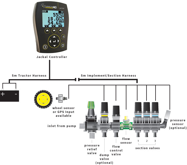 The Jackal 3-section spray controller offers great flexibility and is simple to operate.